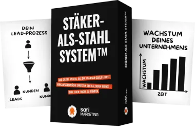 Das STÄRKER-ALS-STAHL SYSTEM™ im Wert von 9.999 € testest du 14 Tage ohne Kosten für unsere Arbeit. Du gibst nur dein Werbebudget frei. Wir holen die Anfragen, wählen die Kunden aus und setzen dir die Termine in den Kalender. Und zwar für deine profitabelsten Aufträge, nicht für den Kleinkram.
